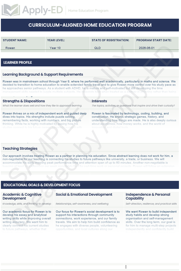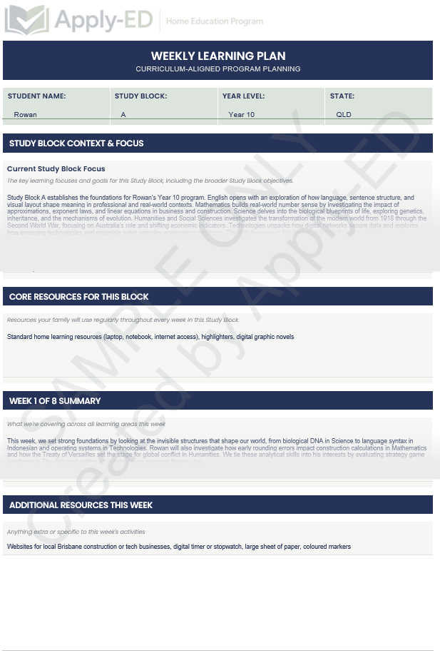 Programs at this level include a strategic mix of advanced academic targets and pathway-focused goals that support your teen's future direction. The structure heavily emphasises self-directed study and independent time management.
